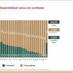 A nivel nacional, 54% de camas de hospitalización general están disponibles y 46% ocupadas. En camas con ventiladores, 61% están disponibles y 39% ocupadas.