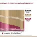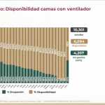 y 47% ocupadas. En camas con ventiladores, 59% están disponibles y 41% ocupadas.