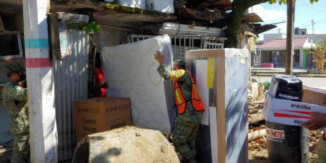 En dos días, la Secretaría de la Defensa Nacional (Sedena), han entregado mil 400 paquetes de enseres domésticos a familias del municipio de Macuspana que fueron afectadas por las inundaciones.