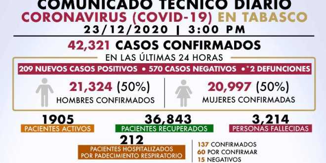 Al reportar este día, 209 casos y dos defunciones -una de días anteriores y otra de las últimas horas-, la dependencia llamó a ser empáticos con el sufrimiento de quienes han perdido un familiar o tienen parientes enfermos y sobre todo a contribuir a que no se repitan estos escenarios, sólo por celebrar.