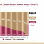 A nivel nacional, 52% de camas de hospitalización general están disponibles y 48% ocupadas. En camas con ventiladores, 59% están disponibles y 41% ocupadas.