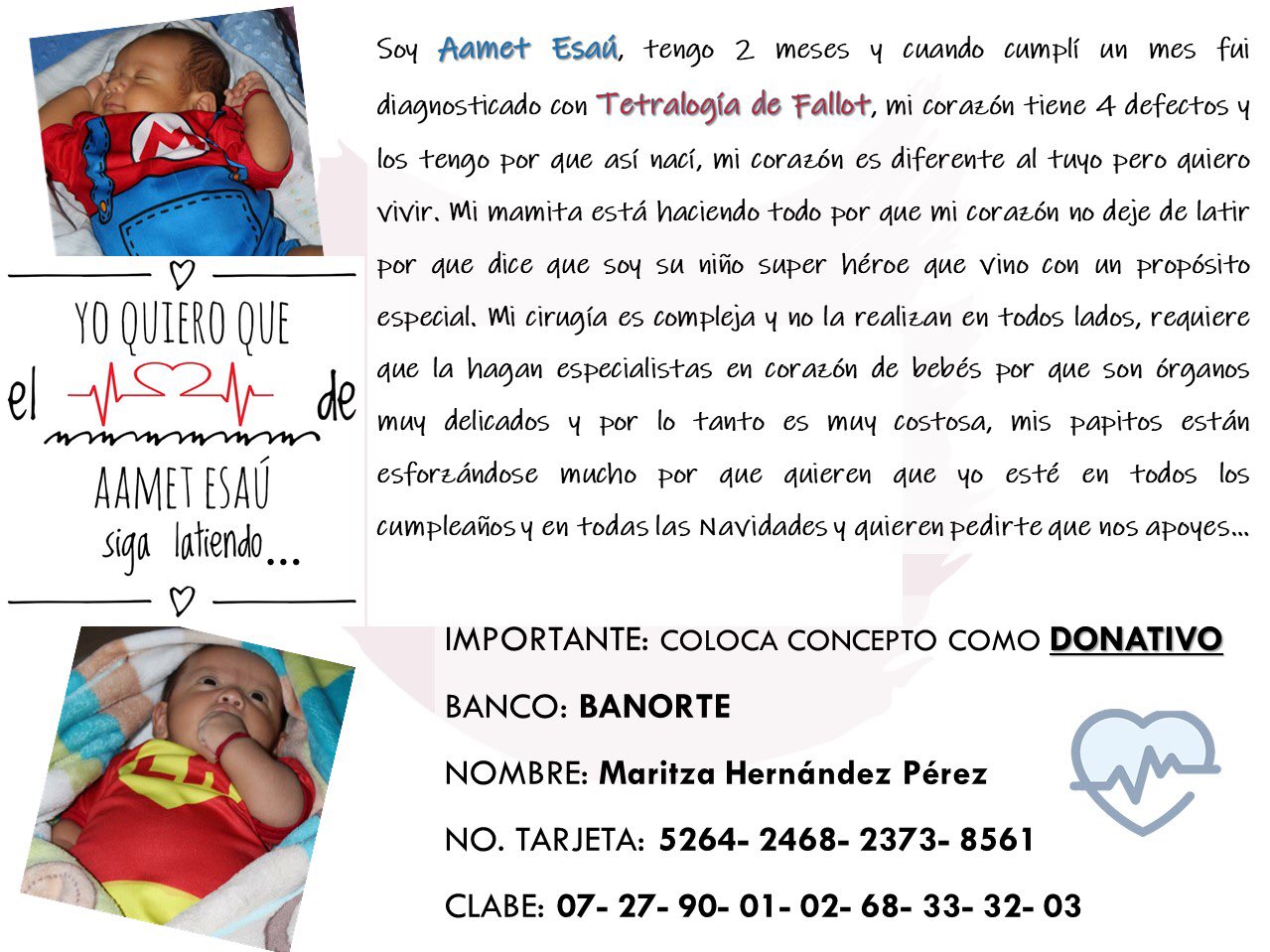 Más detalles en la página: https://www.facebook.com/Ayudemos-al-Coraz%C3%B3n-de-Aamet-110805764151468
