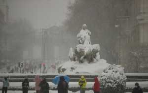 La fuente de Cibeles cubierta de nieve