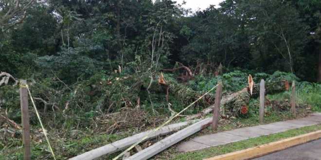 Debido a la humedad ocurrió el desraizamiento y caída de un árbol sobre los postes que sostenían el extremo de uno de los puentes para fauna arborícola instalado en el nuevo boulevard «Carlos Pellicer Cámara».