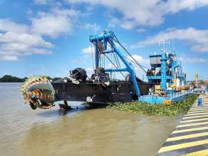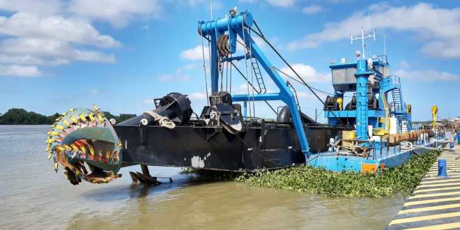 La draga arribó en las primeras horas de ayer miércoles a las instalaciones portuarias para iniciar los trabajos de extracción de tres millones de metros cúbicos de material.