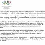 Junto con sus socios y amigos japoneses, el COI está plenamente concentrado y comprometido con la entrega exitosa de los Juegos Olímpicos y los Juegos Paralímpicos de Tokio 2020 este año”.