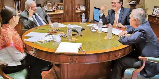 En la llamada, el Presidente estuvo acompañado por el canciller Marcelo Ebrard y el exjefe de la Oficina de la Presidencia de la República, Alfonso Romo.