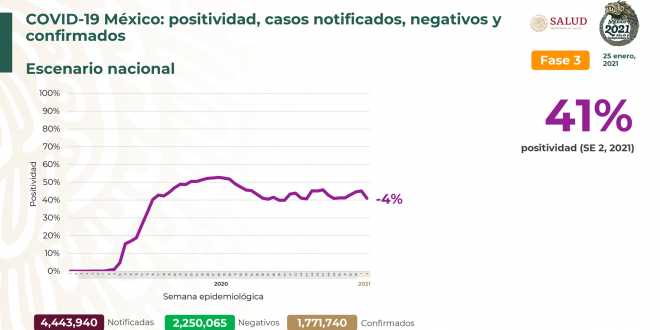 Al 25 de enero de 2021 hay 1,335,876 personas recuperadas de #COVID19. Hay 1,771,740 casos confirmados y 2,250,065 negativos. Se han registrado 150,273 defunciones confirmadas.