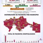 En el último reporte, la cifra de pacientes activos subió ligeramente a 2 mil 83 sujetos, en tanto que de los 277 hospitalizados, 213 recibieron confirmación positiva a COVID.