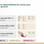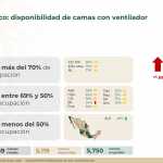 A nivel nacional, 42% de camas de hospitalización general están disponibles y 58% ocupadas. En camas con ventiladores, 47% están disponibles y 53% ocupadas.