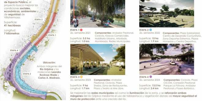 La segunda fase, añadió, estará lista en el segundo semestre del año 2022 e incluirá una Plaza Solidaridad, un Centro de Desarrollo Comunitario, Zona de Deportes Extremos, Plazas Húmedas y un Centro Deportivo, mientras que la tercera etapa, a concluirse en el segundo semestre de 2023, del lado del malecón Carlos Madrazo, contemplará andadores peatonales, ciclo-vías, además de la Plaza Sheba, restaurantes y un teatro al aire libre.