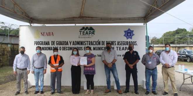 Ante la presencia de la directora general del SEABA, María Victoria Zarrabal Rabelo, la presidente municipal de Teapa, Tey Mollinedo Cano, realizó este miércoles, la entrega oficial de estas unidades de diferentes tipos y modelos, mismos que se encuentran en malas condiciones, las cuales fueron aseguradas por la Dirección de Tránsito Municipal.