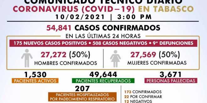 De acuerdo con el Comunicado Técnico Diario emitido por el sector, que abarca de las 3 de la tarde de ayer martes a la misma hora de este 10 de febrero, Tabasco acumuló un total de 54 mil 841 contagios a lo largo de la emergencia sanitaria, de los que 49 mil 644 personas ya se recuperaron y vencieron a la enfermedad.