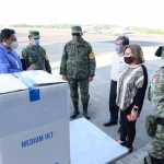 En el aeropuerto internacional de Villahermosa, recibe la titular de la dependencia, Silvia Roldán Fernández, nuevo lote de biológicos de la farmacéutica Pfizer