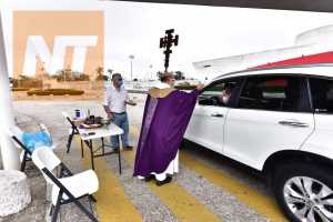 El Padre Roberto Valencia de la parroquia universitaria San Marcos, estuvo ayer en el estacionamiento del Museo Papagayo, en donde dio la bendición y un sobre de ceniza, a los automovilistas que, sin bajarse de su auto, la recibieron, en una nueva modalidad de cumplir con el rito cristiano, en tiempos de pandemia.