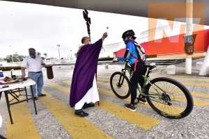 El párroco Roberto Valencia bendijo a automovilistas, ciclistas y peatones