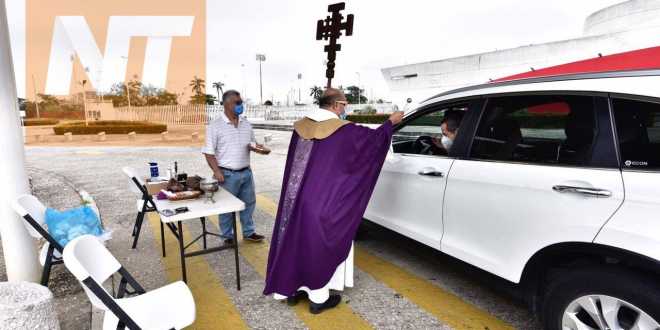 El Padre Roberto Valencia de la parroquia universitaria San Marcos, estuvo ayer en el estacionamiento del Museo Papagayo, en donde dio la bendición y un sobre de ceniza, a los automovilistas que, sin bajarse de su auto, la recibieron, en una nueva modalidad de cumplir con el rito cristiano, en tiempos de pandemia.