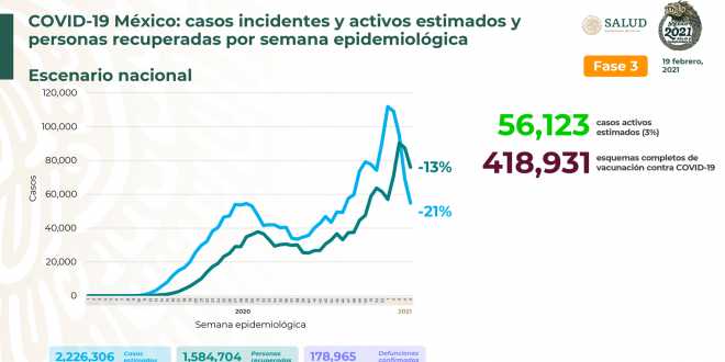 Al 19 de febrero de 2021 hay 1,584,704 personas recuperadas de #COVID19 y 178,965 defunciones confirmadas.