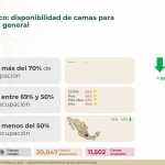 A nivel nacional, 64% de camas de hospitalización general están disponibles y 36% ocupadas. En camas con ventiladores, 62% están disponibles y 38% ocupadas.