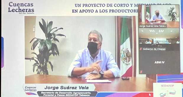 El Gobierno del Estado de Tabasco participó este viernes en la presentación virtual del programa “Cuencas lecheras del Sur-Sureste”, que tiene el objetivo ofrecer a productores de la región soluciones de corto y mediano plazos, para que incrementen su producción, competitividad e ingresos.