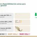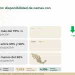 A nivel nacional, 67% de camas de hospitalización general están disponibles y 33% ocupadas. En camas con ventiladores, 63% están disponibles y 37% ocupadas.