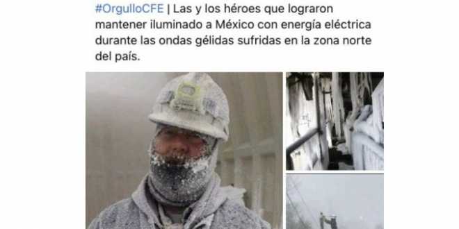 Aceptamos un error en la selección del archivo fotográfico; lo que no aceptamos es que se deje de reconocer el gran esfuerzo de las y los trabajadores de la CFE que sin interrupción lograron restablecer el servicio eléctrico en el norte del país.