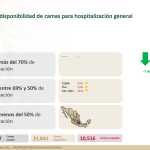 A nivel nacional, 68% de camas de hospitalización general están disponibles y 32% ocupadas. En camas con ventiladores, 64% están disponibles y 36% ocupadas.