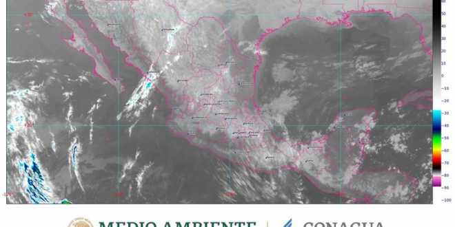 En contraste, un sistema de alta presión posicionado en niveles medios de la atmósfera ocasionará una onda cálida, la cual propiciará ambiente de cálido a caluroso durante la tarde, y escaso potencial de lluvia en el occidente, centro y sur del territorio nacional. Se pronostican temperaturas máximas de 40 a 45 grados Celsius en Guerrero y Michoacán, y de 35 a 40 grados Celsius en Chiapas, Colima, Jalisco, Nayarit y Oaxaca.