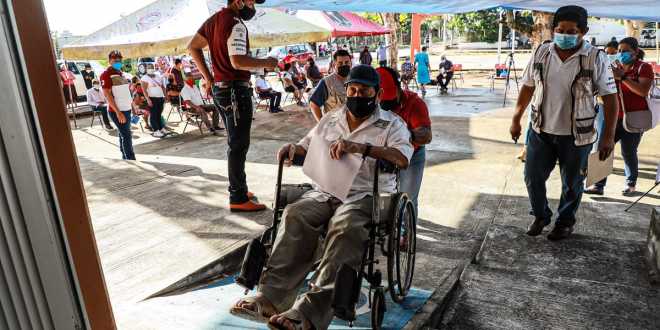 En el Centro Social de Emiliano Zapata, el señor Aroldo Alfonso Sarao, fue el primer adulto en recibir la vacuna bajos los protocolos establecidos por el Gobierno de México, sin que presentara alguna reacción adversa al biológico.