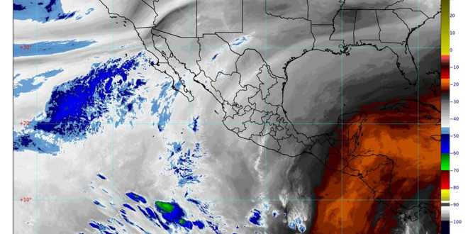 Para el Pacífico Norte se estima ambiente muy frío al amanecer, principalmente en Sonora, y de cálido a caluroso por la tarde; cielo medio nublado y sin lluvia, y viento de dirección variable de 15 a 30 km/h, con rachas de 80 a 90 km/h en Sonora.