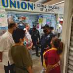 Los elementos policiales se trasladaron a las zonas aledañas del parque la Paz y Juárez, acompañados del director de la Policía Auxiliar, Bancaria, Industrial y Comercial (PABIC), José Hugo Rivas Paz y el subdirector de la Policía Estatal, Fernando Alvarado Suárez; en el recorrido exhortaron a la población a continuar con los cuidados preventivos contra el COVID-19.