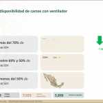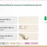 A nivel nacional, 69% de camas de hospitalización general están disponibles y 31% ocupadas. En camas con ventiladores, 66% están disponibles y 34% ocupadas.