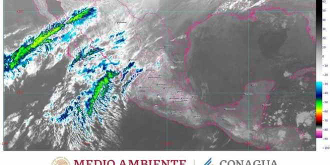 En contraste, durante el día, un sistema de alta presión mantendrá la onda de calor en estados del occidente, centro y sur de la República Mexicana, con temperaturas de 40 a 45 grados Celsius en zonas de Guerrero, Jalisco y Michoacán, y de 35 a 40 grados Celsius en sitios de Campeche, Chiapas, Colima, Guanajuato, Morelos, Nayarit, Oaxaca, Sinaloa, Tabasco y Yucatán, así como en el suroeste del Estado de México y de Puebla.