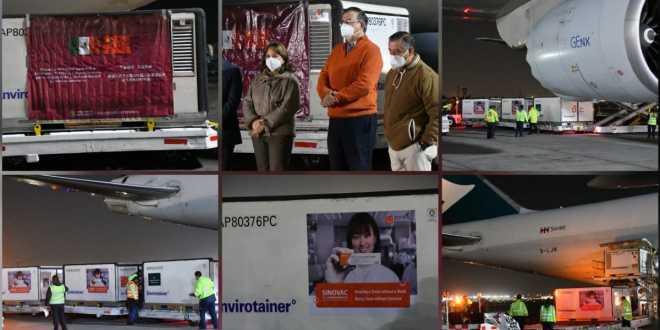 Un embarque con 800 mil dosis de vacunas contra la Covid-19 de la farmacéutica china Sinovac Life Sciences arribaron la mañana de este sábado al Aeropuerto Internacional de Ciudad de México, informó el titular de la Secretaría de Relaciones Exteriores (SRE), Marcelo Ebrard.