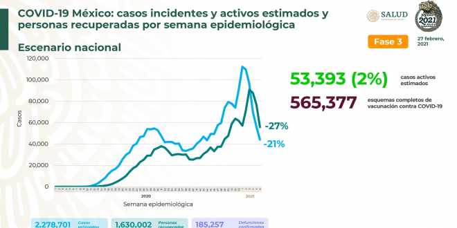 Al 27 de febrero de 2021 hay 1,630,002 personas recuperadas de #COVID19 y 185,257 defunciones confirmadas.