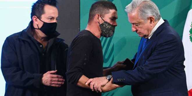 El joven, de 31 años de edad, vestía una sudadera negra y portaba cubrebocas cuando ingresó por un costado del escenario, mientras AMLO escuchaba el informe de Ricardo Sheffield Padilla, titular de la Procuraduría Federal del Consumidor (Profeco), sobre el «quién es quién de los combustibles».