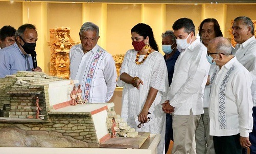 López Obrador en presencia del gobernador de Chiapas, Rutilio Escandón Cadenas, inauguró y recorrió el pabellón de la Reina Roja, ubicado en el Museo de Sitio ‘Alberto Ruz Lhuillier’, recinto que fue montado por el poeta, museógrafo y político tabasqueño Carlos Pellicer Cámara.