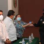 Al evento también asistieron, el presidente del Congreso local, Jesús de la Cruz Ovando; el comisionado de la Policía Estatal, José del Carmen Castillo Ramírez; y las directoras generales de la Policía Estatal de Caminos (PEC), Julissa Riveroll Ochoa, y de Administración, María Josefina Cano Bastar.