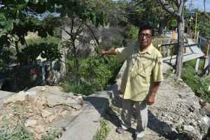 Juan Chávez vive aquí y teme que su vivienda colapse ante la presión del agua