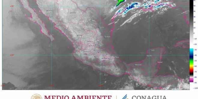 En el transcurso del día, un sistema de alta presión en niveles medios de la atmósfera mantendrá la onda de calor en los estados del occidente, sur y sureste de la República Mexicana, así como ambiente de caluroso a muy caluroso en el centro del país y la Península de Yucatán. Se esperan temperaturas de 40 a 45 grados Celsius en Guerrero, Michoacán, el norte de Oaxaca y el sur de Veracruz, y de 35 y 40 grados Celsius en sitios de Campeche, Chiapas, Colima, el suroeste del Estado de México, Guanajuato, Hidalgo, Jalisco, Morelos, Nayarit, el suroeste de Puebla, Querétaro, Quintana Roo, San Luis Potosí, Sinaloa, Tabasco, Tamaulipas y Yucatán.