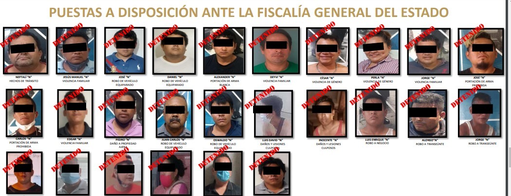 Resultado de las acciones policiales efectivas, elementos de la corporación recuperaron seis vehículos con reporte de robo. De los 59 detenidos, 26 fueron puestas a disposición de la Fiscalía General del Estado (FGE) y 33 más al Juez Calificador.
