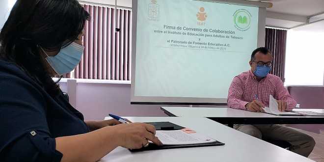 Con el objeto de sentar las bases para que la aplicación de recursos que aporte el Instituto de Educación para Adultos de Tabasco (IEAT) al Patronato de Fomento Educativo en el Estado de Tabasco A. C. se realice de forma transparente y establecer los mecanismos para la evaluación y control de su ejercicio, se llevó a cabo la firma de convenio de colaboración entre ambas partes.