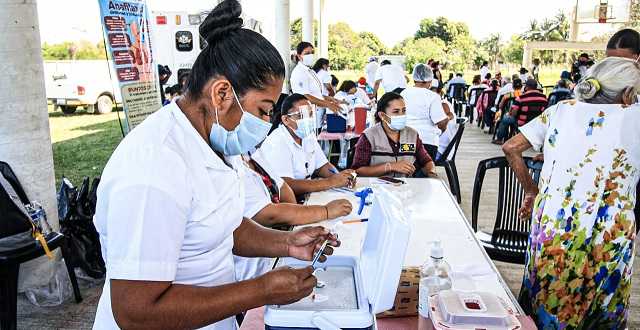 Decenas de enfermeras y médicos se multiplican y combinan su tarea de protección a la salud con la logística apoyada por personal de Bienestar federal, el DIF Tabasco, DIF municipal y el Ejército mexicano. El propósito es compartido: dar celeridad al procedimiento de inoculación.