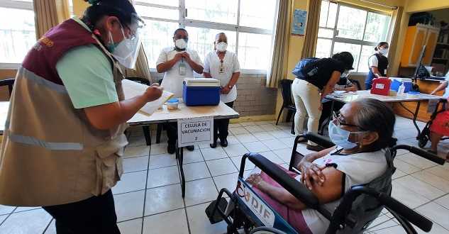Doña Josefina cumple ese criterio. Tras la valoración médica de rigor, pasa del triage a una de las tres células de vacunación instaladas en uno de los salones de la institución de bachillerato. Su rostro, del que sobresalen las arrugas propias de la edad, apenas y se asoma detrás de un cubrebocas color azul cielo, que para ella –confiesa– ha significado ‘la diferencia entre la vida y la muerte’.