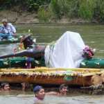 El Cristo Negro destinado a llegar a Otatitlán, tuvo como primer destino una población mazateca llamada Puctlanzingo, esta fue encontrada por un matrimonio conformado por Rafael Manuel y Toribia Juana, en la desembocadura del río tonto (hoy en el fondo de la presa Miguel Alemán) y posteriormente adorada en dicha población. Dos años después, en 1597, hubo una peste de viruela e inundaciones que afectaron a toda la zona, por lo cual, los habitantes del lugar llegaron a la conclusión de que la imagen de este santo era un presagio divino de que no pertenecía ahí, por lo tanto, la pusieron sobre una balsa (hecha de bambú) en el río Papaloapan para que así llegara a cualquier lugar donde esta quisiera estar. Al cabo de unos días, pobladores de Otatitlán encontraron la imagen bajo un tamarindo e inmediatamente pensaron que era un milagro, la sacaron de la balsa y la llevaron bajo una chocita para ser venerada. Al siguiente año comenzaron las peregrinaciones y celebraciones hacia esta imagen que reemplazó a Yacatecuhtli, Dios del comercio, que igualmente era negro.