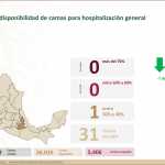 A nivel nacional, 83% de camas de hospitalización general están disponibles y 17% ocupadas. En camas con ventiladores, 78% están disponibles y 22% ocupadas.