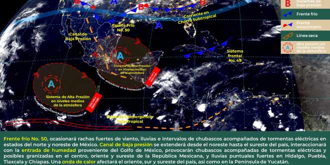 Se prevén vientos del este y sureste de 10 a 20 kilómetros por hora con rachas de hasta 45 kilómetros por hora, sobre todo en el oriente del Estado, precisó el organismo estatal.