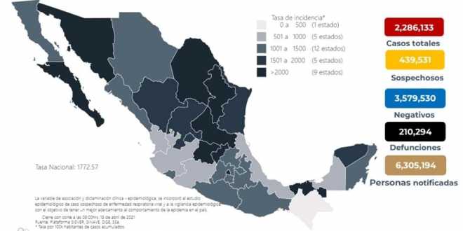 Al 13 de abril de 2021 hay 1,815,237 personas recuperadas de #COVID19 y 210,294 defunciones confirmadas.