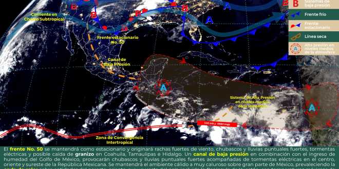 Se esperan vientos variables del Sureste, durante el día y del Noreste por la noche, con velocidad de 10 a 25 kilómetros por hora, con rachas cercanas a los 40 kilómetros por hora, siendo especialmente favorable para incendios al oriente de la entidad, por lo que llama a tomar las precauciones necesarias.