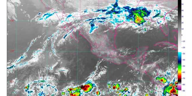 Por otra parte, un sistema de alta presión en niveles medios de la atmósfera mantendrá una onda de calor sobre la Península de Yucatán y el noreste, oriente, sur y sureste del territorio nacional, con temperaturas máximas de 40 a 45 grados Celsius en zonas de Chiapas, Campeche, Guerrero, el norte de Hidalgo, Michoacán, Nuevo León, Oaxaca, el norte de Puebla, el norte de Querétaro, San Luis Potosí, Tabasco, Tamaulipas, Veracruz y Yucatán, y de 35 a 40 grados Celsius en áreas de Coahuila, Colima, el suroeste del Estado de México, el noreste de Guanajuato, Jalisco, Morelos, Nayarit, Quintana Roo y Sinaloa.